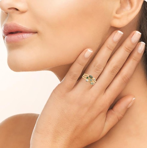 vergoldet 3 Mirkon, Zirkonia mit Halbedelsteinen, Grössen 50-52-54-56-58