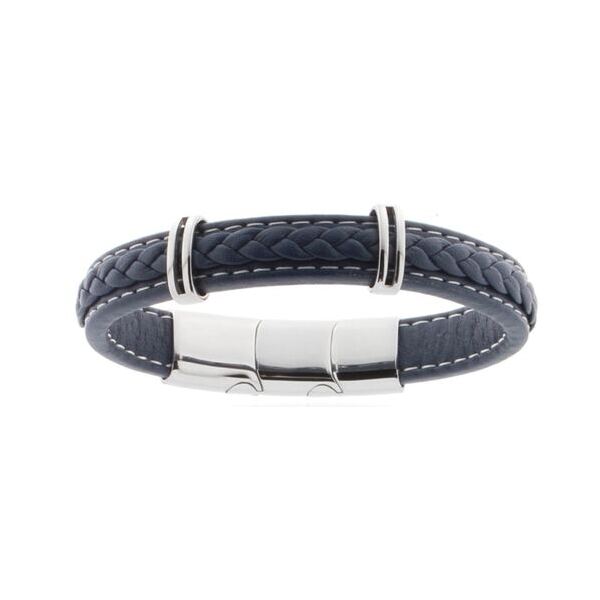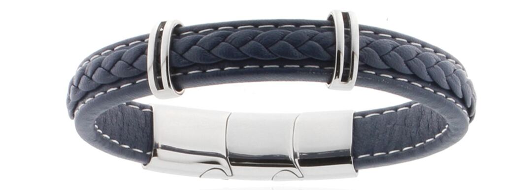 Lederarmband blau geflochten mit Edelstahleinlagen poliert, (Italian Leather) Breite 12mm, Grösse verstellbar 21-22.5cm