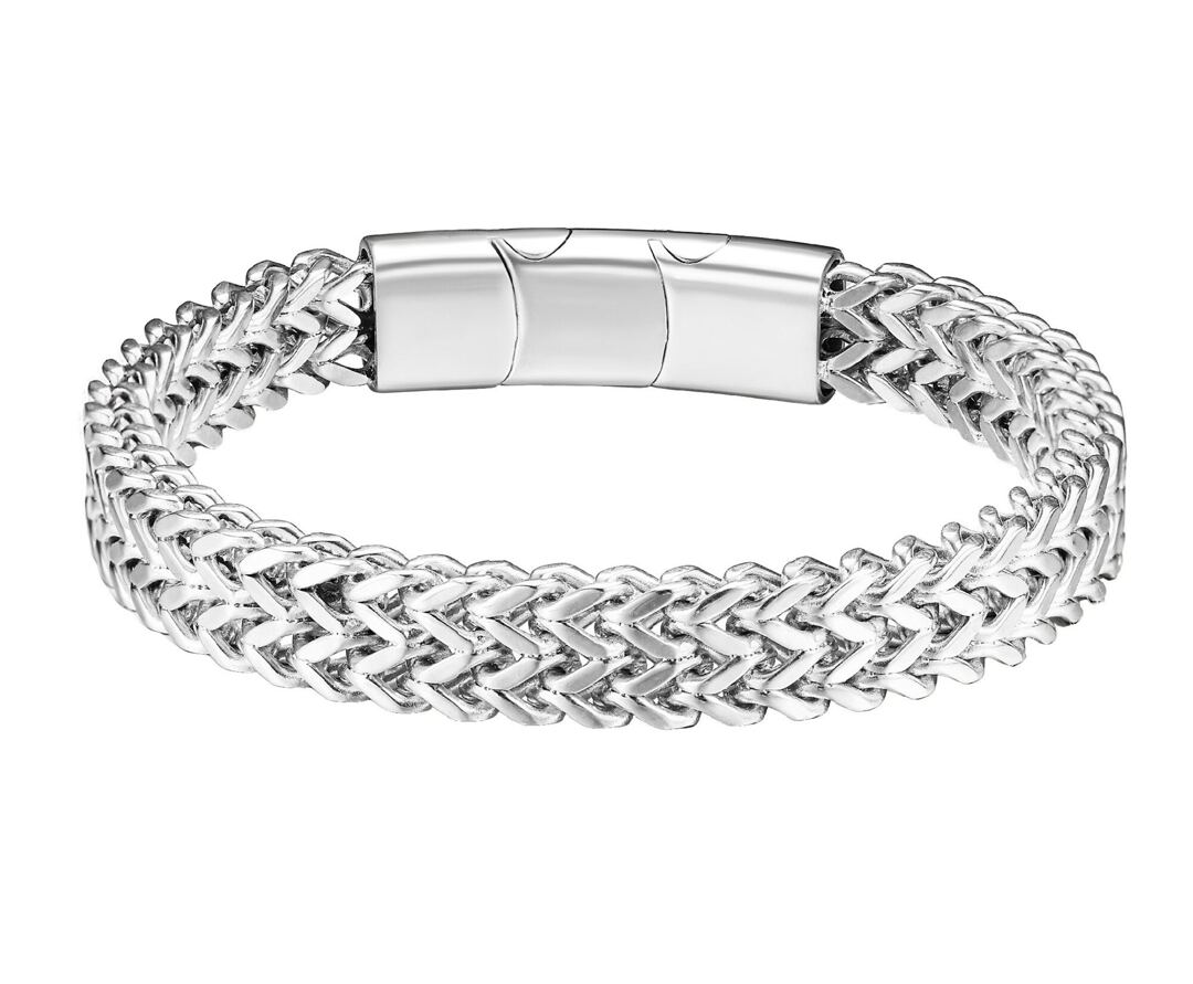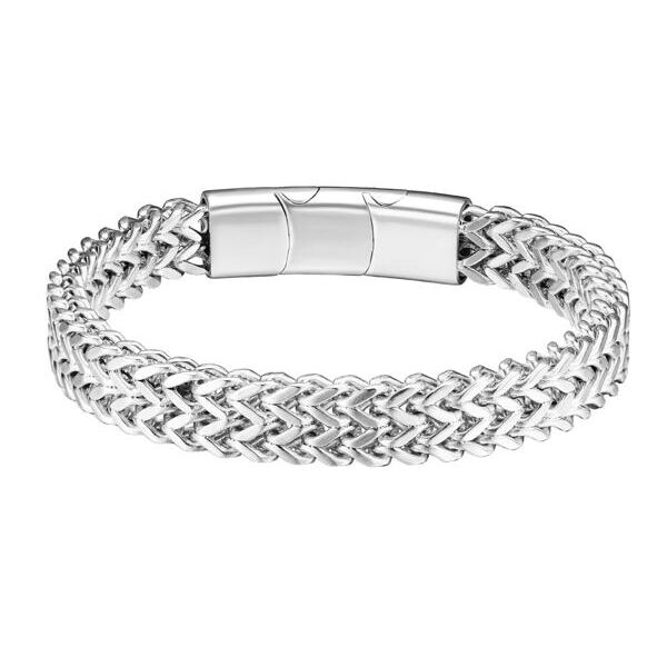 Armband, Edelstahl 316L antiallergisch geflochten poliert, Breite 9.5mm, Magnetverschluss mit Verlängerunsglied 21-22.5cm
