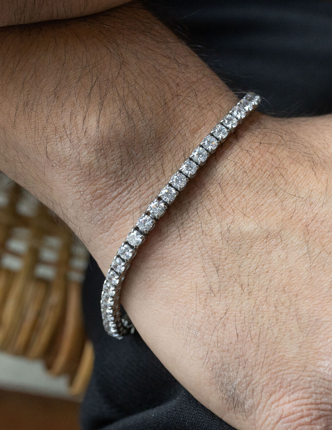 Tennisarmband Edelstahl 316L antiallergisch, Zirkonia Steine (triple A Qualtiät) Ø 4mm, gefassst mit Mikrocasting, Breite 4mm, Verschlusserweiterung mit Zirkonia Stien 19-21cm