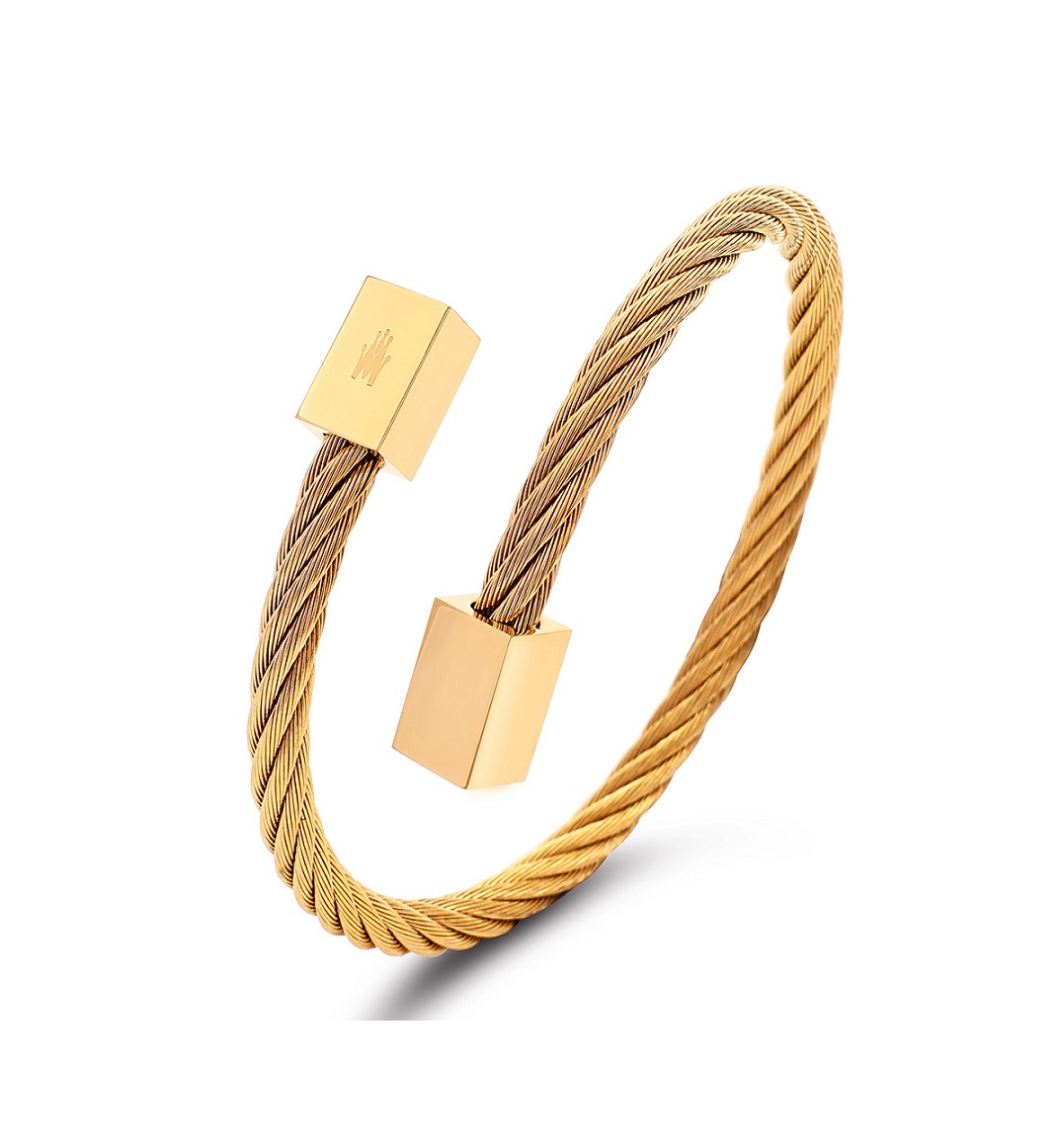 Bracelet-jonc, acier inox. 316L-PVD or antiallergique, diamètre intérieur 57-70mm extensible