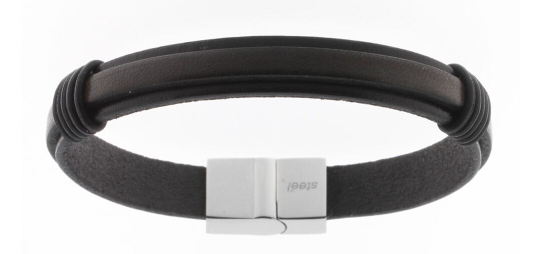 Bracelet en cuir brun/noir, (Italian Leather) largeur 10mm, longueur 21cm, Made in Germany